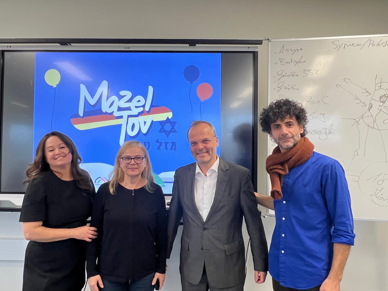Felix Klein, Beauftragter der Bundesregierung für jüdisches Leben, gemeinsam mit Martina Michalski, Nina Coenen und Sami Alkomi bei einer "Mazel Tov" Veranstaltung in Berlin